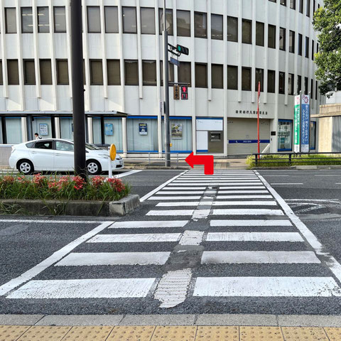 滋賀銀行の前を通過し、横断歩道を渡って左へ曲がります。ここから約50mほど直進します。