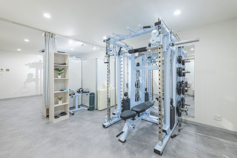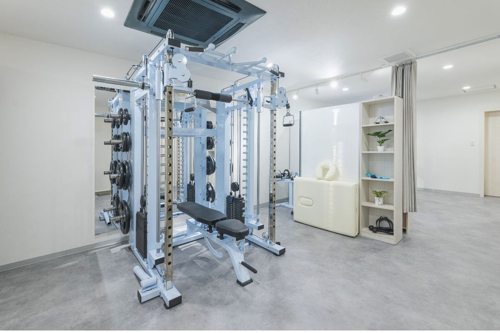 空間は清潔で開放感があり、トレーニングに集中できるよう設計されています。